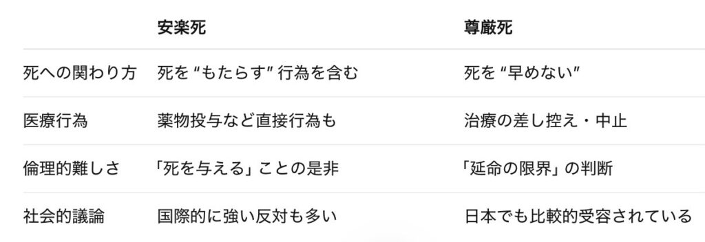 安楽死と尊厳死の議論は、単なる医療の問題ではなく、私たちの価値観、社会構造、人権、そして生命の尊厳そのものに関わるテーマです。