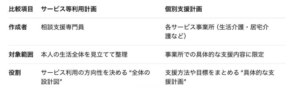 サービス等利用計画と個別支援計画の違いを整理