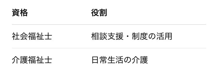 どちらも福祉の国家資格であり、人の生活を支える重要な仕事ですが、実際の役割や仕事内容は大きく異なります。