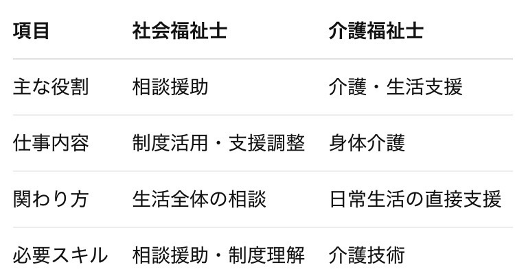「社会福祉士と介護福祉士は何が違うの?」