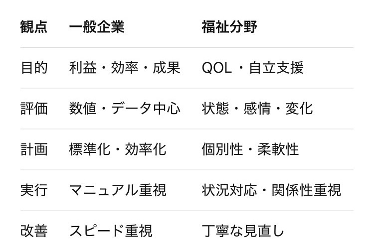 一般と福祉のPDCAの違い
