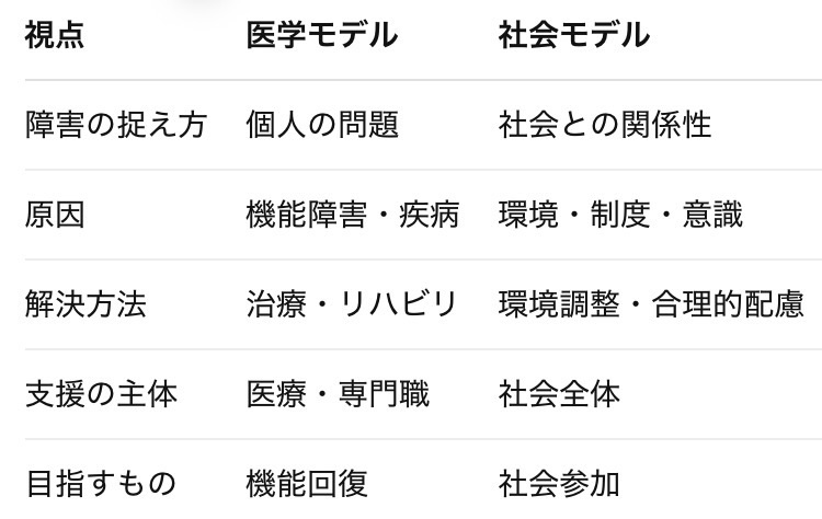 社会モデルと医学モデルは、障害理解の基本となる重要な考え方です。
